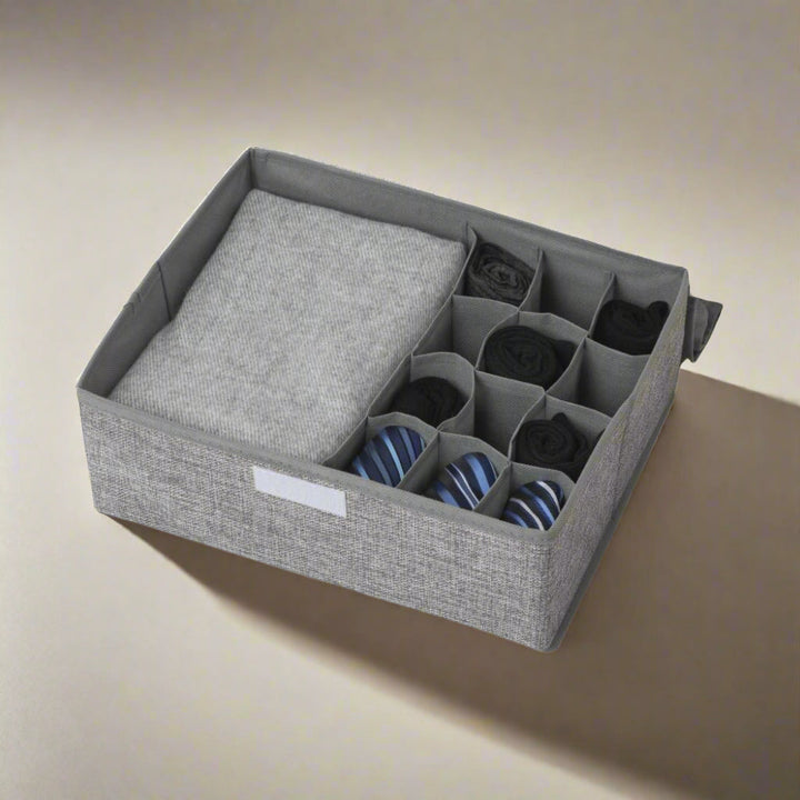 A 15-grid sock organizer is a handy storage solution that helps keep your socks neatly arranged and easily accessible. It typically consists of a grid-like structure that divides the space into 16 compartments, making it ideal for sorting and organizing various pairs of socks.