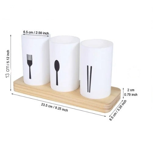 3-Piece Modern Utensil Holder with Wooden Display Tray