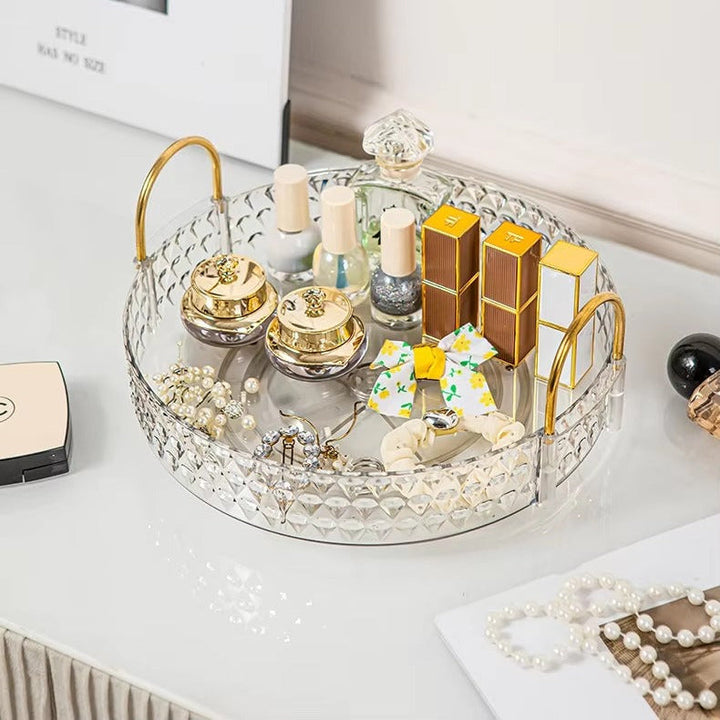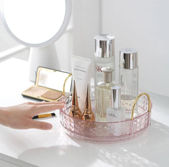 Keep your essentials beautifully displayed and effortlessly accessible with the 360° Multifunctional Rotating Storage Organizer. Designed with elegance and practicality in mind, this crystal-style organizer features smooth 360-degree rotation and convenient side handles for easy portability. Perfect for cosmetics, skincare, perfumes, or even kitchen and office supplies, it combines style and functionality to elevate any space.