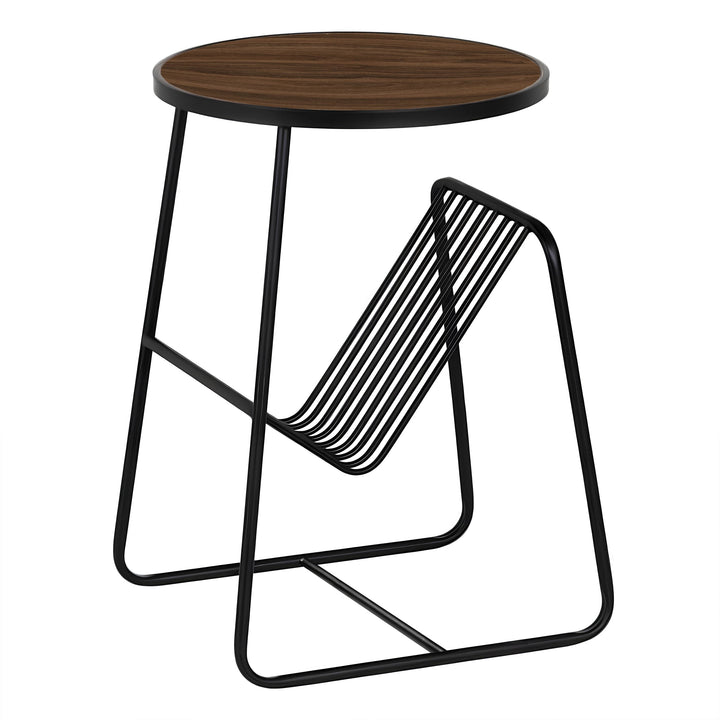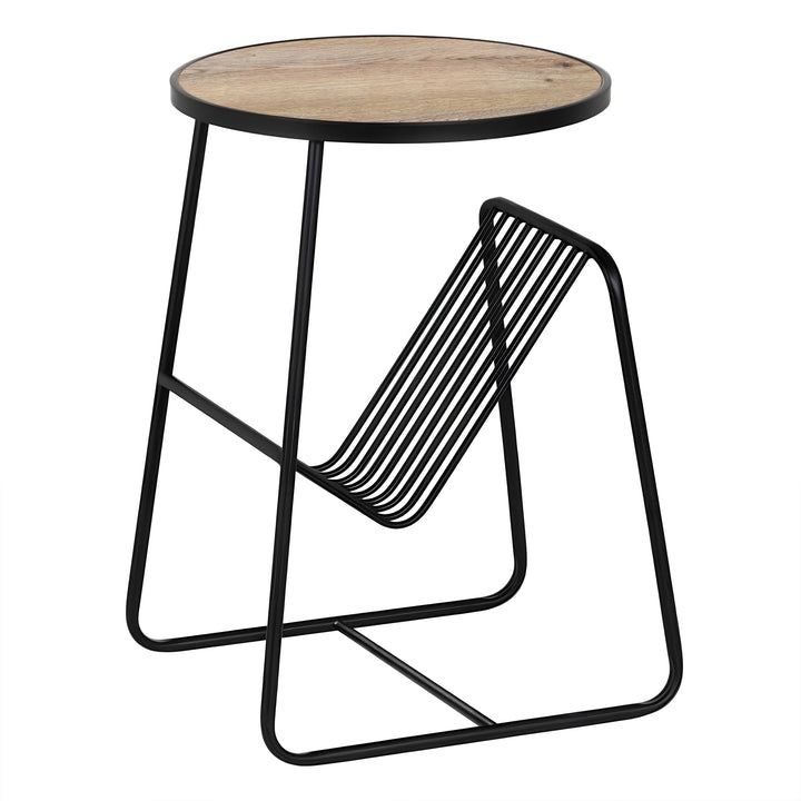 Integrated Arc Magazine Holder: Features a clever arc-shaped metal design at the base that doubles as a minimalist and easily accessible storage solution for your favorite magazines, newspapers, or smaller books.
