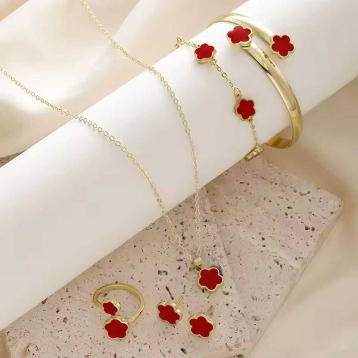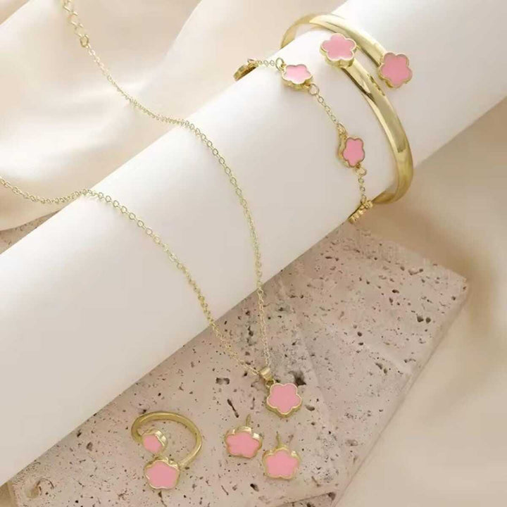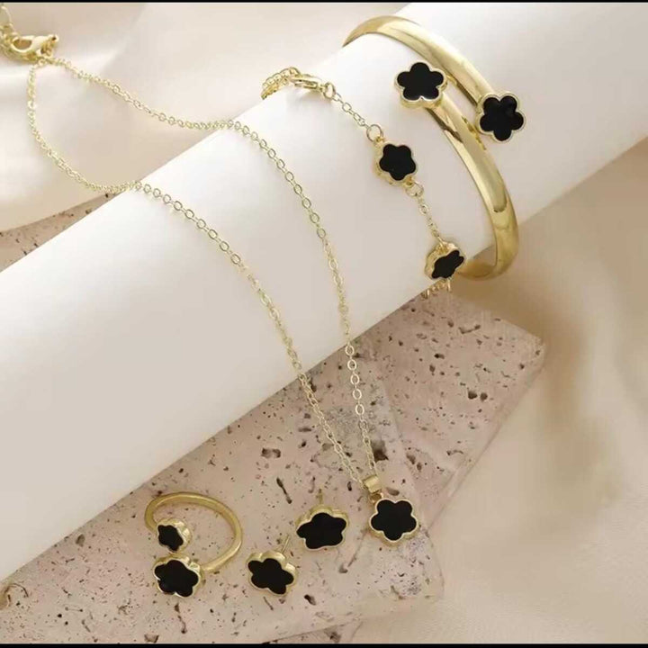 Black Petals Charm – 5-Piece Jewelry Set