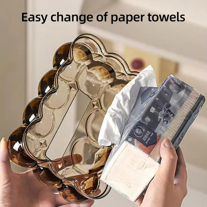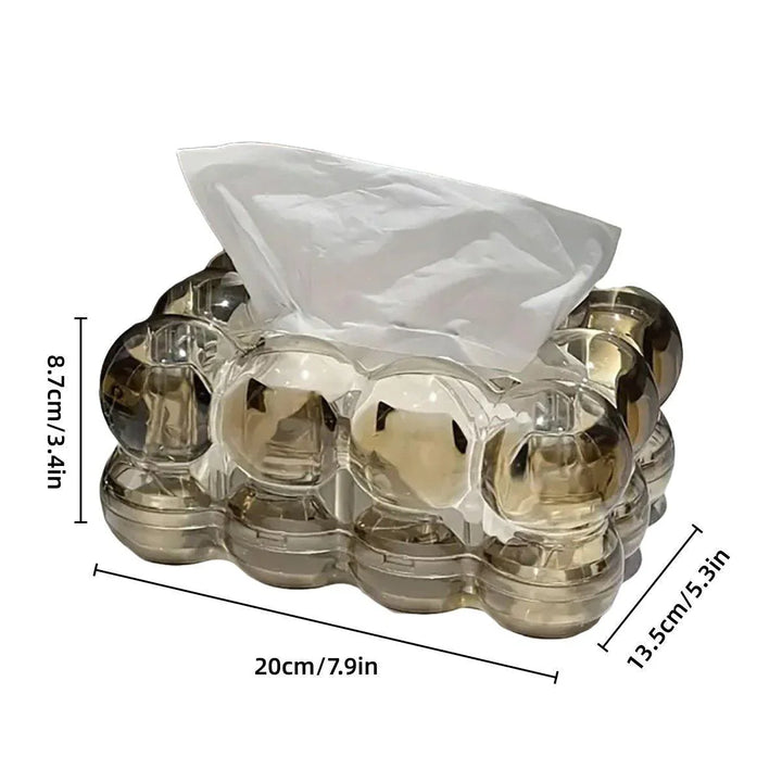 Elevate your home decor with the "Bubbly Bliss" Tissue Box, a whimsical and functional piece that adds a touch of playful charm to any space. This unique tissue box features a cluster of interconnected, bubble-like spheres that create a captivating and eye-catching design. Crafted from high-quality, durable acrylic, the "Bubbly Bliss" is both stylish and practical.