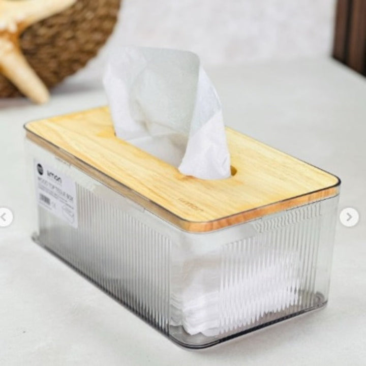 Add a touch of elegance and functionality to your space with the ClearView Wooden Lid Tissue Box. Designed with a sleek wooden lid and three transparent acrylic sides, it combines natural warmth with modern clarity—making tissues accessible while blending seamlessly with any décor.