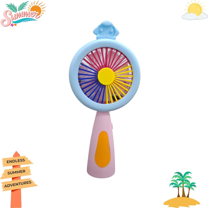 Experience a burst of color and a cooling breeze with this fun and functional mini handheld fan, featuring vibrant rainbow-colored blades and built-in LED illumination.