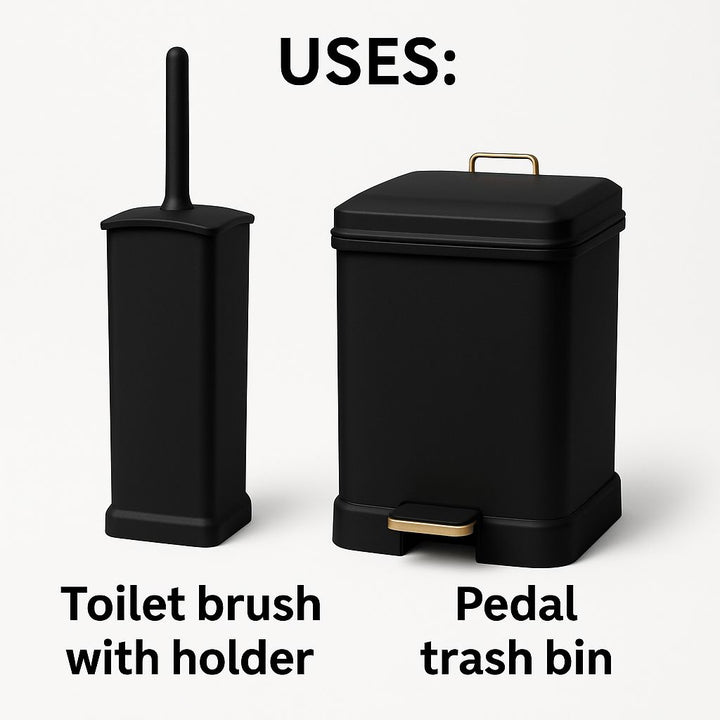 Stay neat and organized with the EdgeClean Rectangle Dustbin & Brush Set (1923) by Limon. This 2-in-1 set combines a 4.5L dustbin with a detachable inner basket and a practical cleaning brush. The dustbin includes a handle-equipped basket for easy waste removal, while the brush holder features a hollow lid that keeps the brush upright, hygienic, and discreet. Its compact size and modern design make it a perfect fit for bathrooms, kitchens, offices, or any living space.