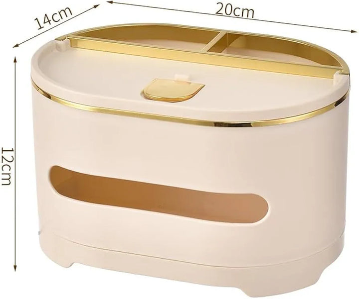 Glamora Cosmetic & Tissue Organizer Simplify your routine with the Glamora Cosmetic & Tissue Organizer—a multifunctional storage solution that combines elegance with practicality. Designed to keep your beauty essentials and tissues neatly in one place, this organizer is perfect for vanities, bathrooms, or workspaces where style meets everyday convenience.