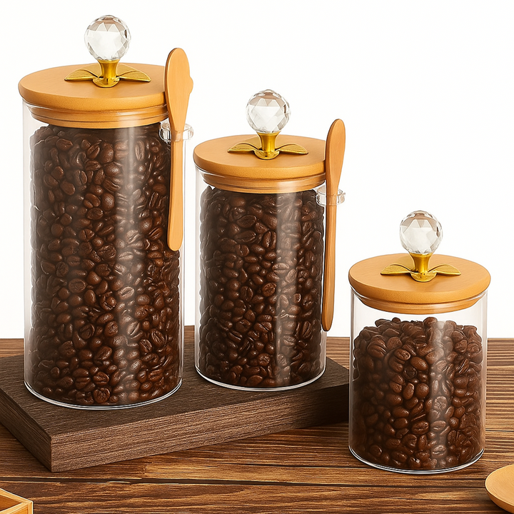 Glass Storage Jar with Decorative Bamboo Lid and Side Spoon