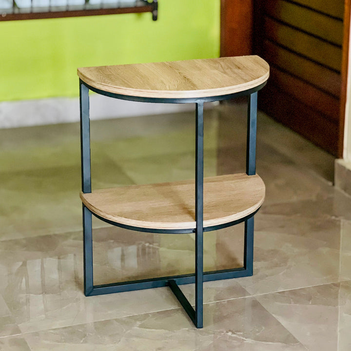 Two-Tiered Storage: Features two spacious, half-moon shaped shelves, providing ample surface area for displaying decor, storing books, or keeping everyday essentials within reach.