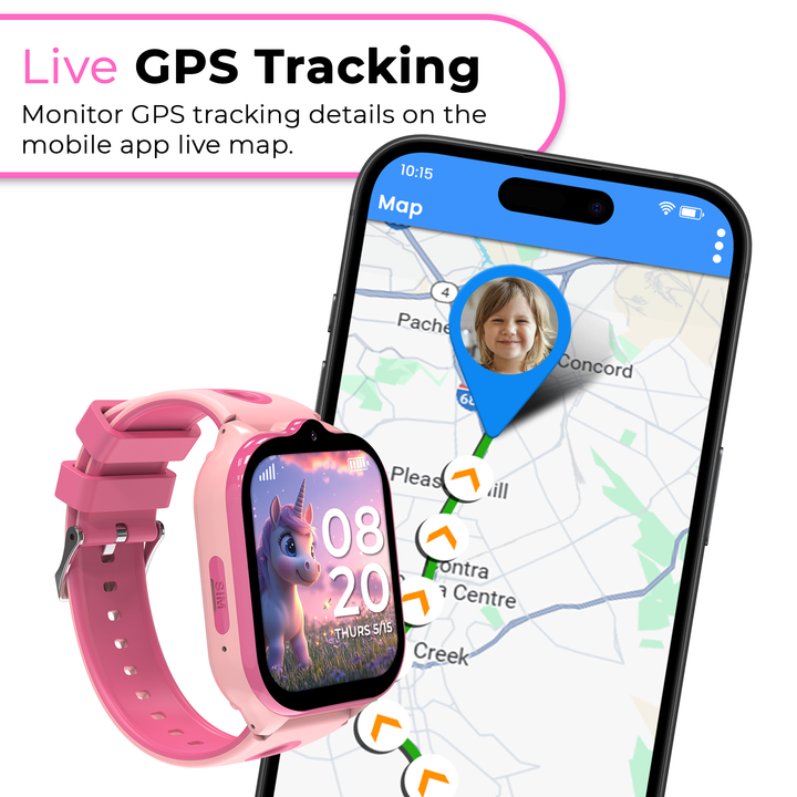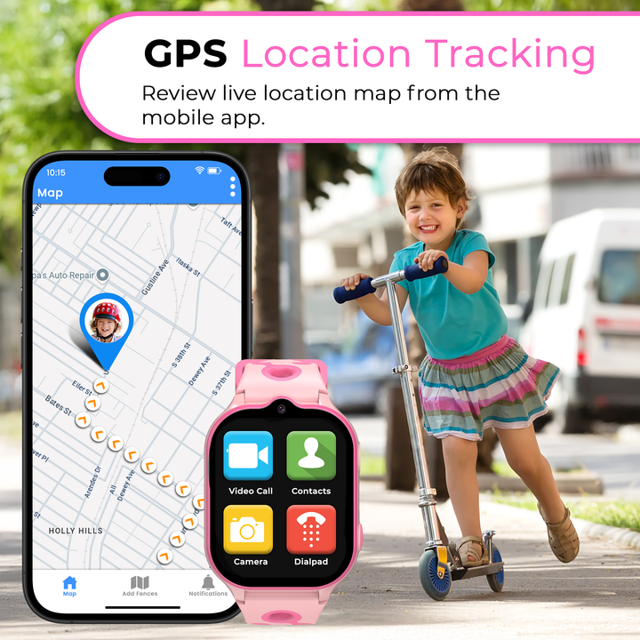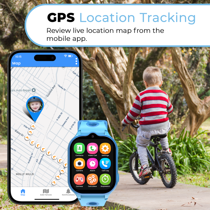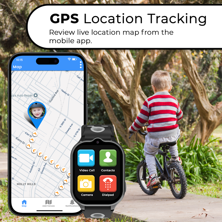 GPS Smart Positioning. Allows you to track your child anytime, anywhere. You can see your child's location using the mobile app with our real-time GPS smart tracking feature and location history. Track them now, or see where they've been! Give yourself peace of mind knowing that should an emergency occur; you will always know where they are!