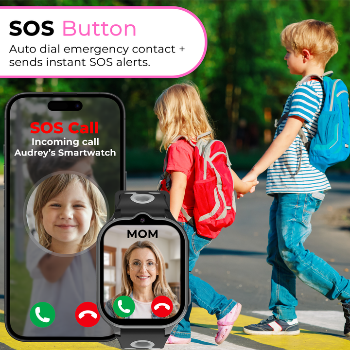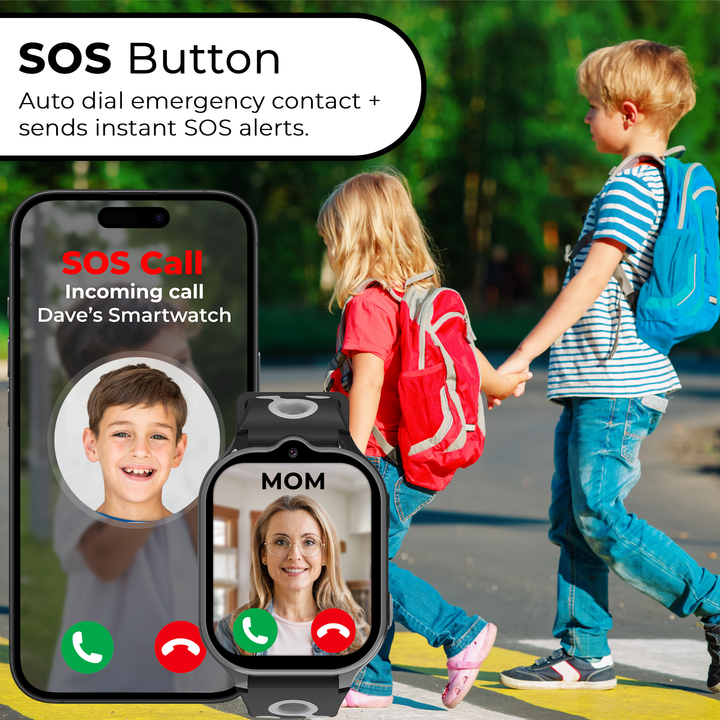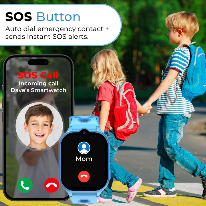 Receive an SOS notification if your child is at risk. In an emergency your child can simply press the SOS button to let you know they need your help. You will receive an SOS alert notification on your mobile app and a 30- second audio recording from the time they press the SOS button. This is the perfect safety feature and a great way to show your child how to call for help in an emergency!
