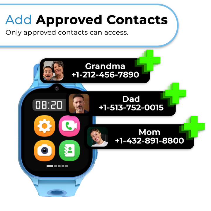 Call Your Child or let them call you. The EmojiKidz smartwatch allows your child to make and receive calls. You decide who your child can call and be called. By adding people to the contact list on your mobile app, you can control who your child is communicating with while also allowing them a sense of independence and control.