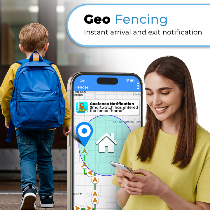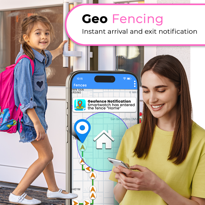 Safe Zones/Geofencing to keep your child safe. Set a radius at your desired location to receive alerts on your mobile app when your child leaves these zones. If they stray too far from the preset parameters, you will be notified, alerting you of their movement. Stay on top of their location from anywhere!