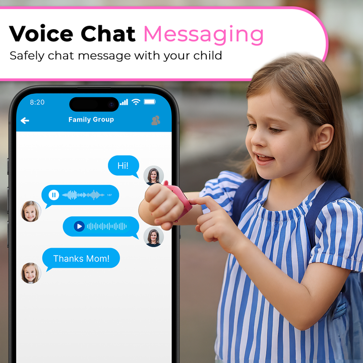 Chat Message are a way to stay in touch with your child through text and audio messages. The EmojiKidz watch can receive and send audio, text, and photo messages. Send a quick "Hi!" or "How are you?" to your child in a snap. It's an easy way for them to reach you while they may be at school and an easy way for you to reach them when you are away.