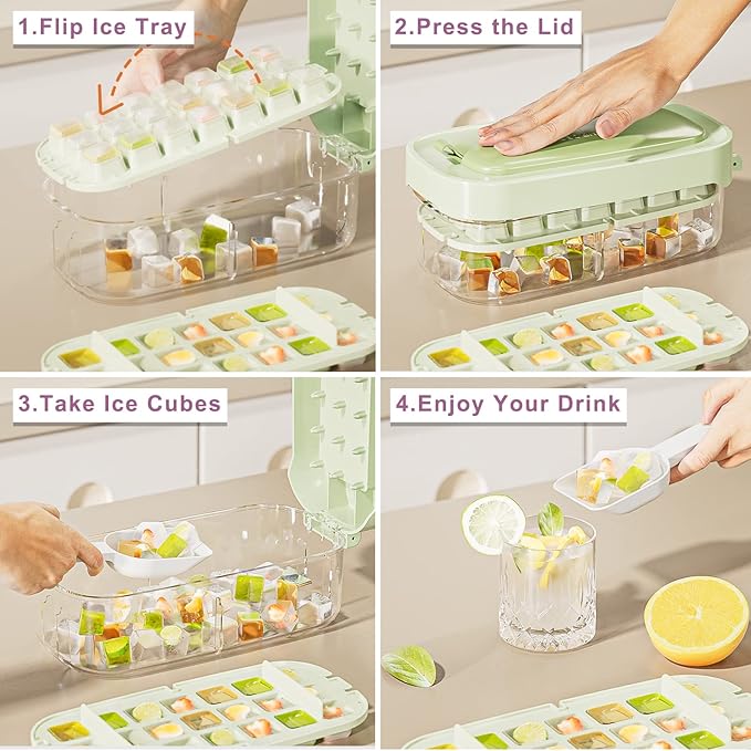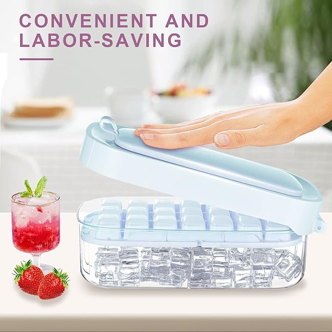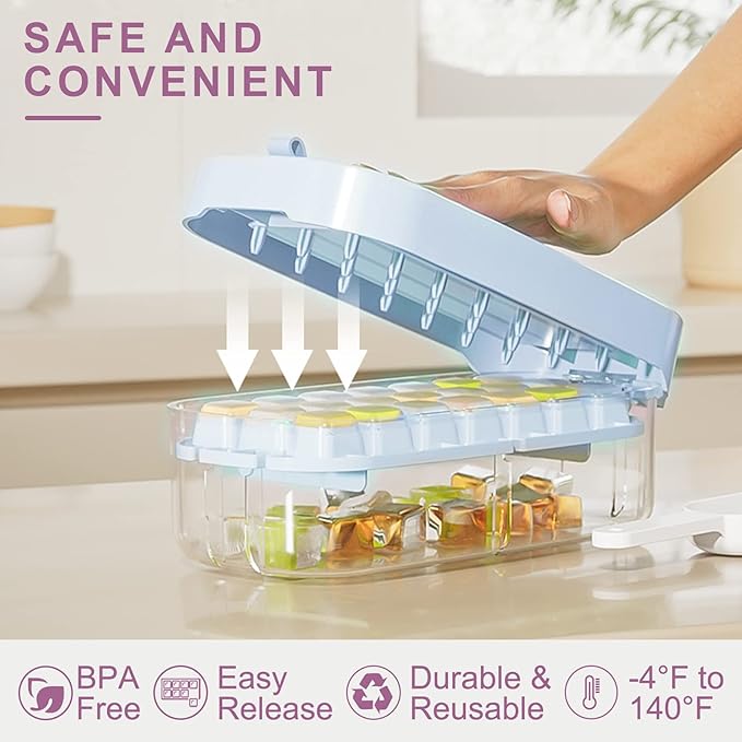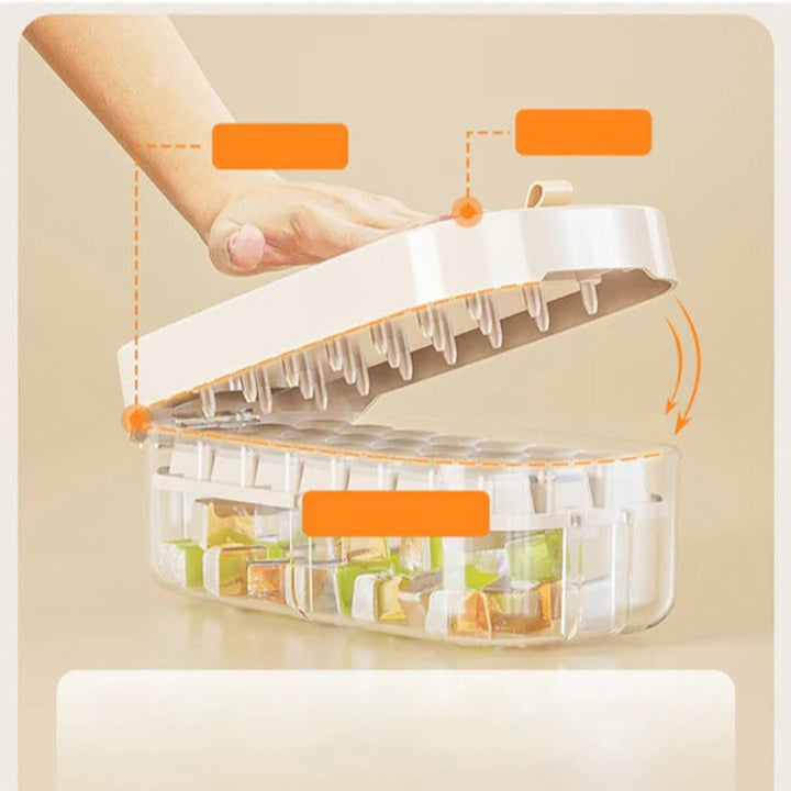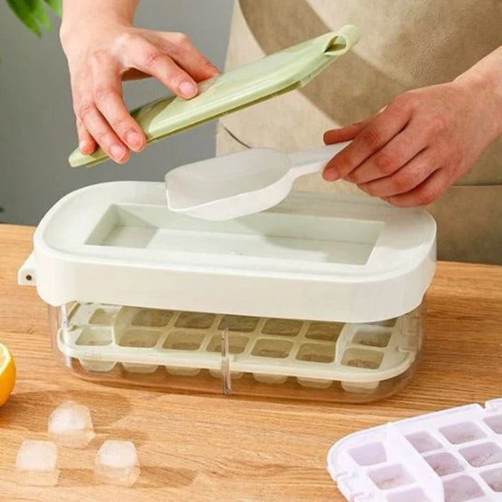 - Make ice the smart way with the Press & Store Ice Box – a dual-layer system designed for easy ice making, storage, and serving. Featuring a press mechanism, it allows effortless ice release without touching the cubes directly, ensuring hygiene and convenience. With 2 trays for extra ice and a shovel for serving, this box is your all-in-one ice solution.