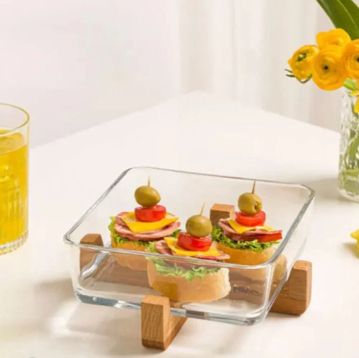 The SnackEase Wooden X-Base Server is a stylish and functional serving solution designed to elevate your dining experience. Featuring a sturdy X-shaped wooden base with a detachable clear glass dish, it’s perfect for keeping and serving snacks, dry fruits, desserts, or appetizers. The non-slip wooden base ensures stability, while the detachable design allows for easy cleaning and versatile use.