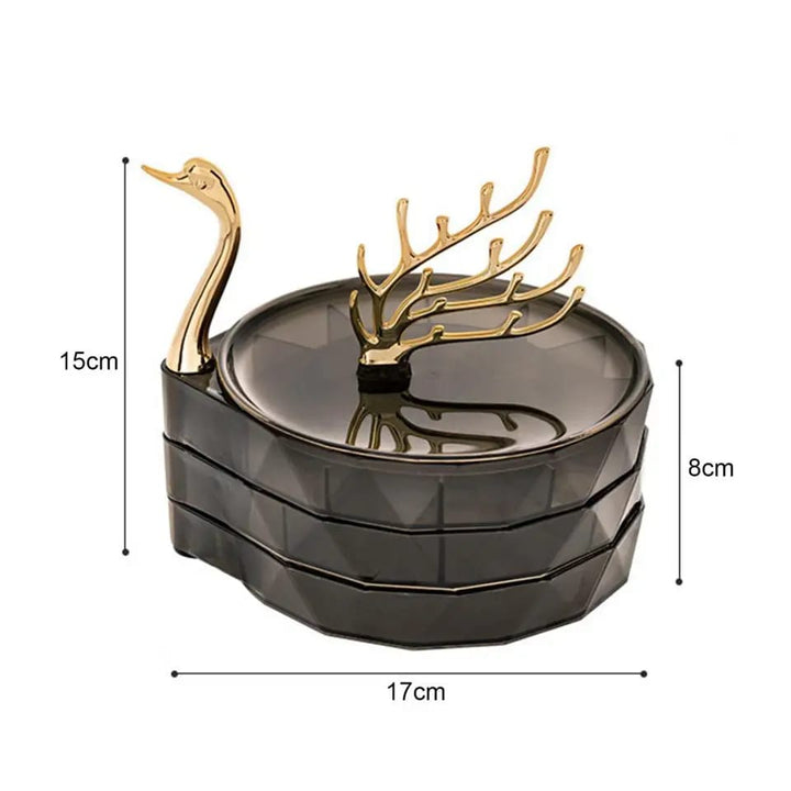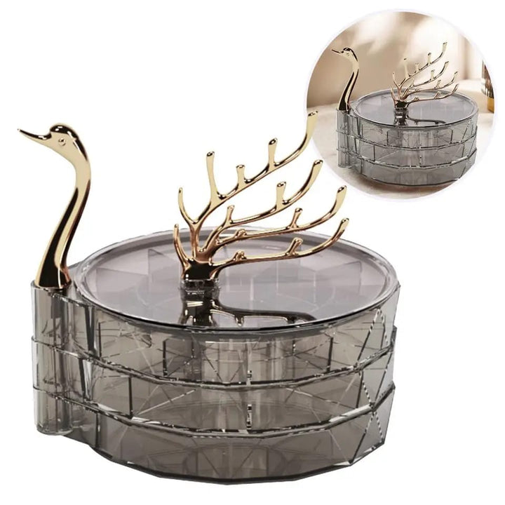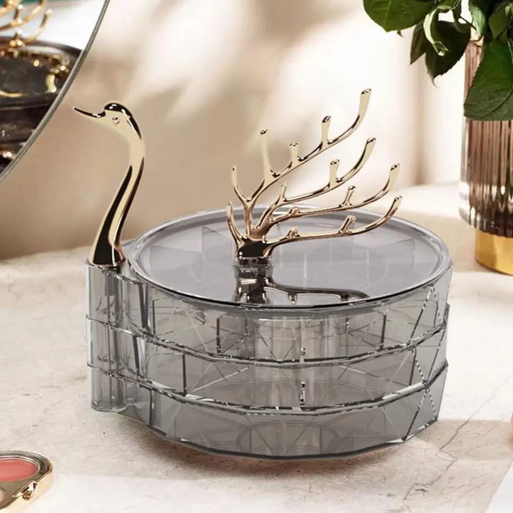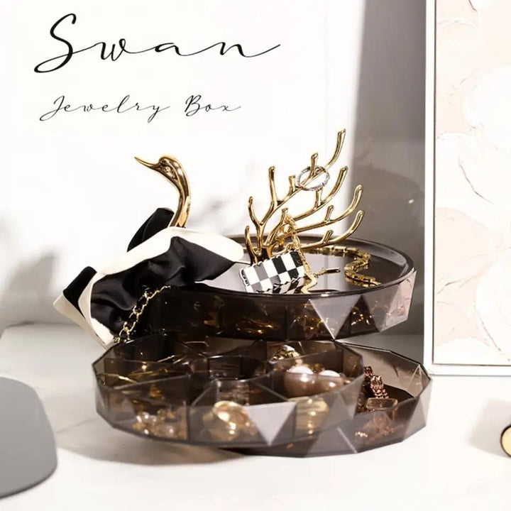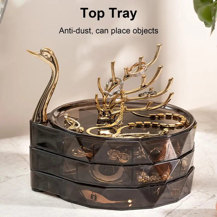 Jewelry Organizer Box Rotatable Swan Shape Transparent Visible Multi Layers Jewelry Storage Large Capacity Dustproof Necklace Jewelry Storage Holder Household Supplies