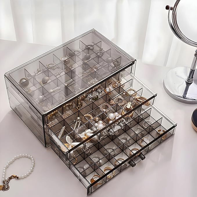 Compartmentalized Layout: Special grids for rings, earrings, bracelets, and necklaces.